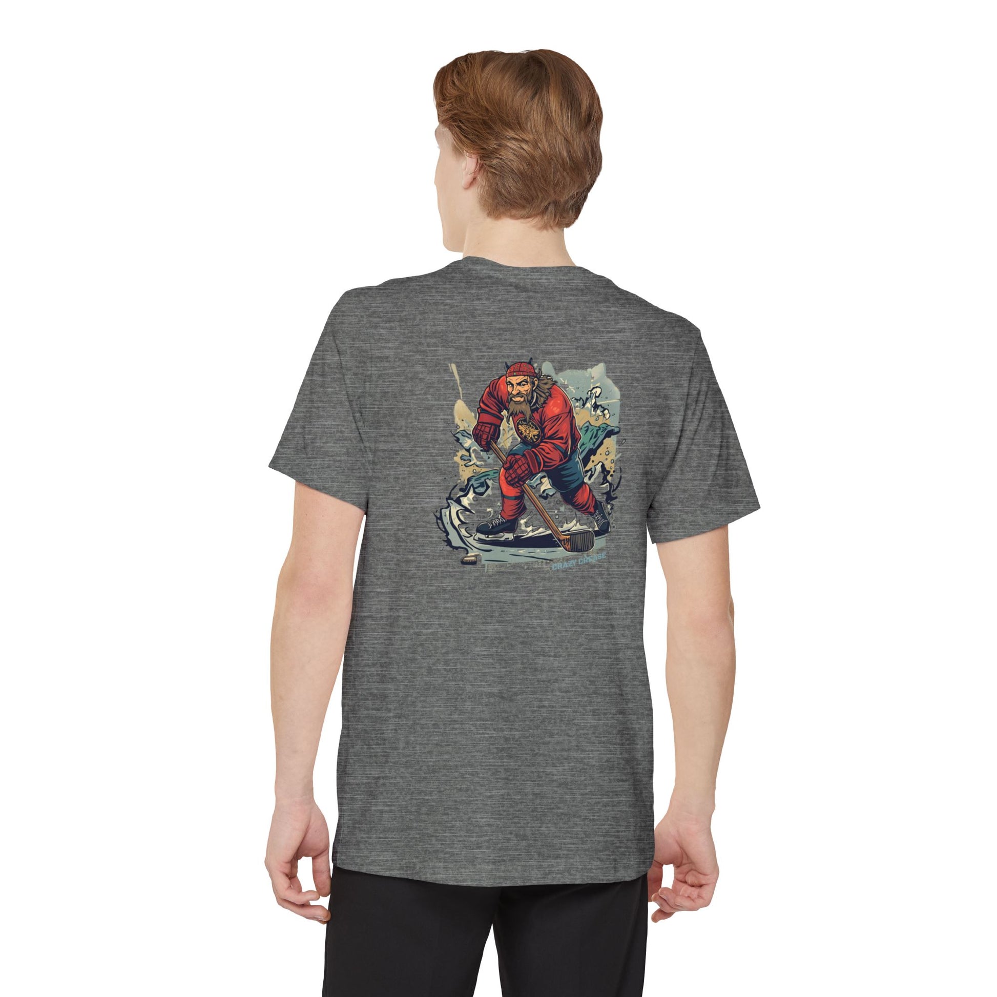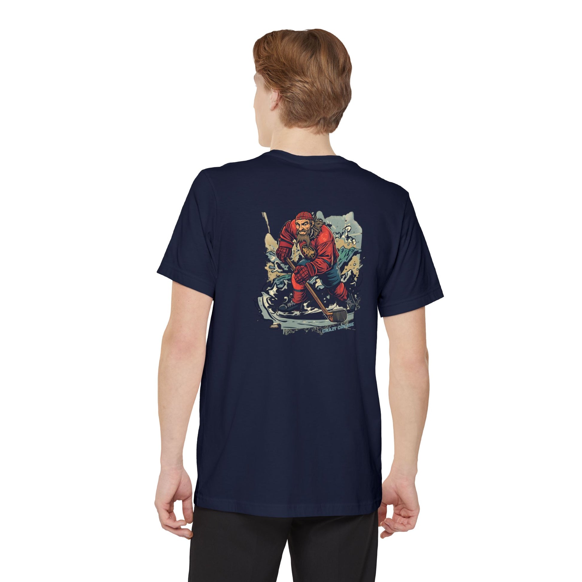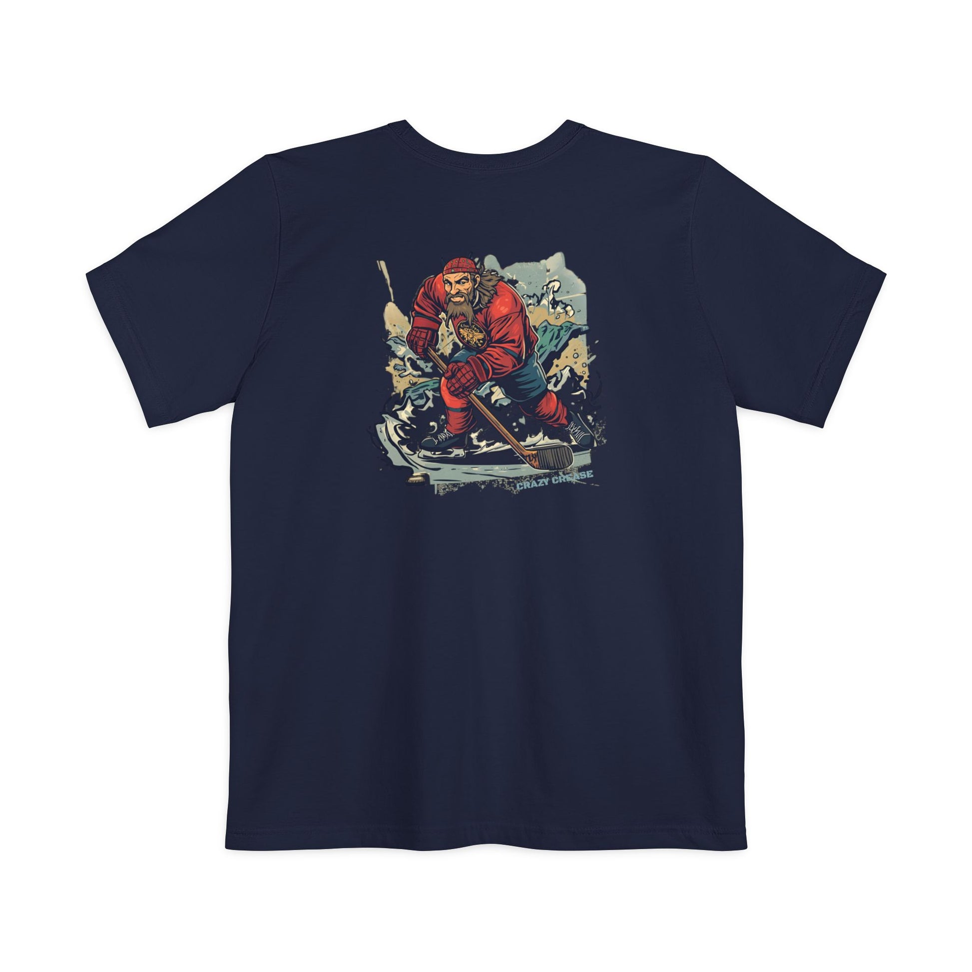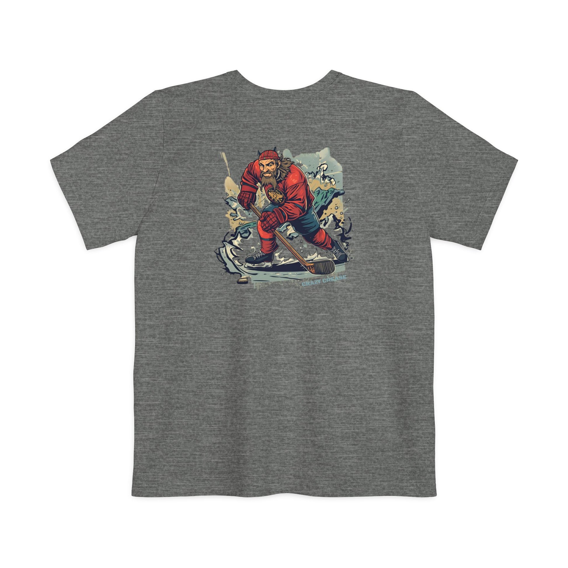 The perfect soft pocket tee for crease creatures and hockey warriors who were born for battle. BORN FOR BATTLE printed on the front pocket and Viking hockey player logo centered on the back.