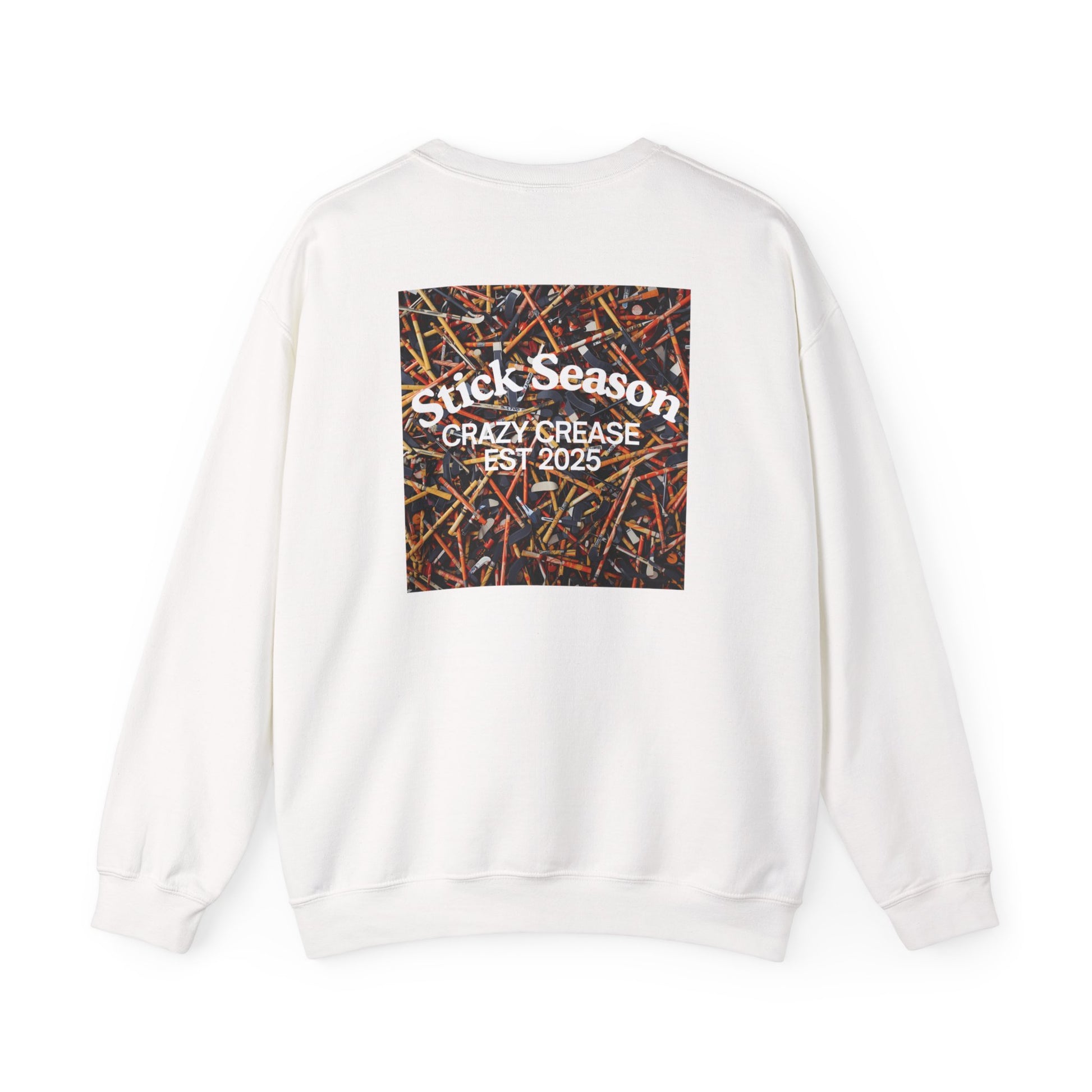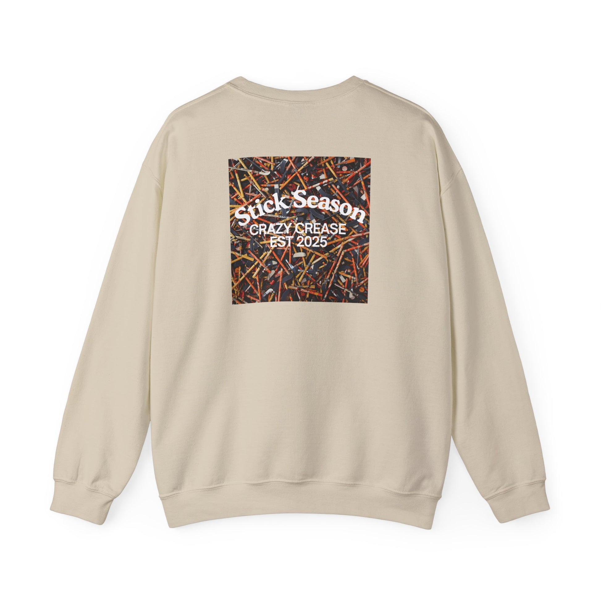 Our Stick Season crewneck sweatshirt has a clean cut design and features medium-heavy fabric. Perfect for layering or wearing solo. With an emphasis on sustainability and ethical production, this sweatshirt resonates with crease creatures who value eco-friendly choices in their wardrobe.