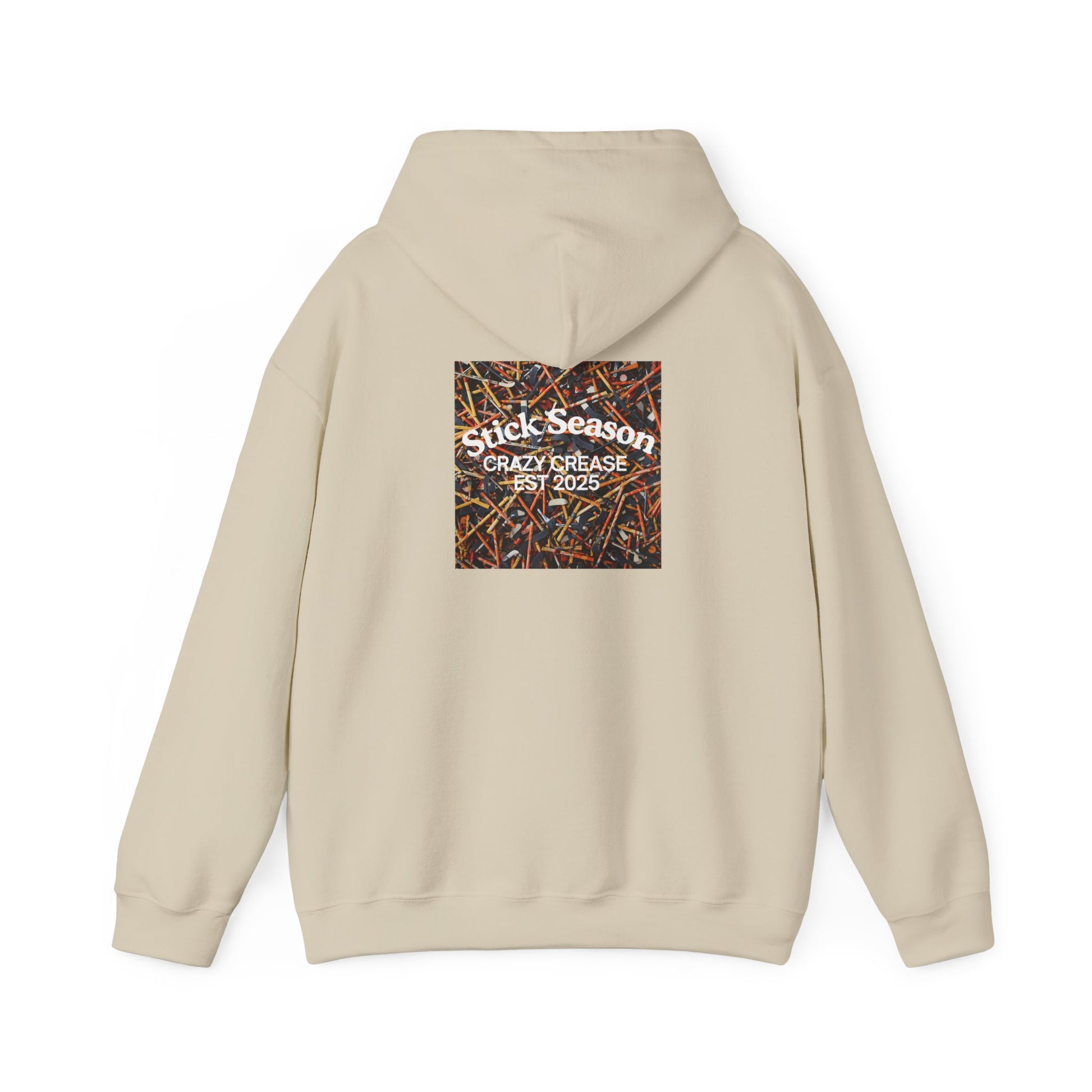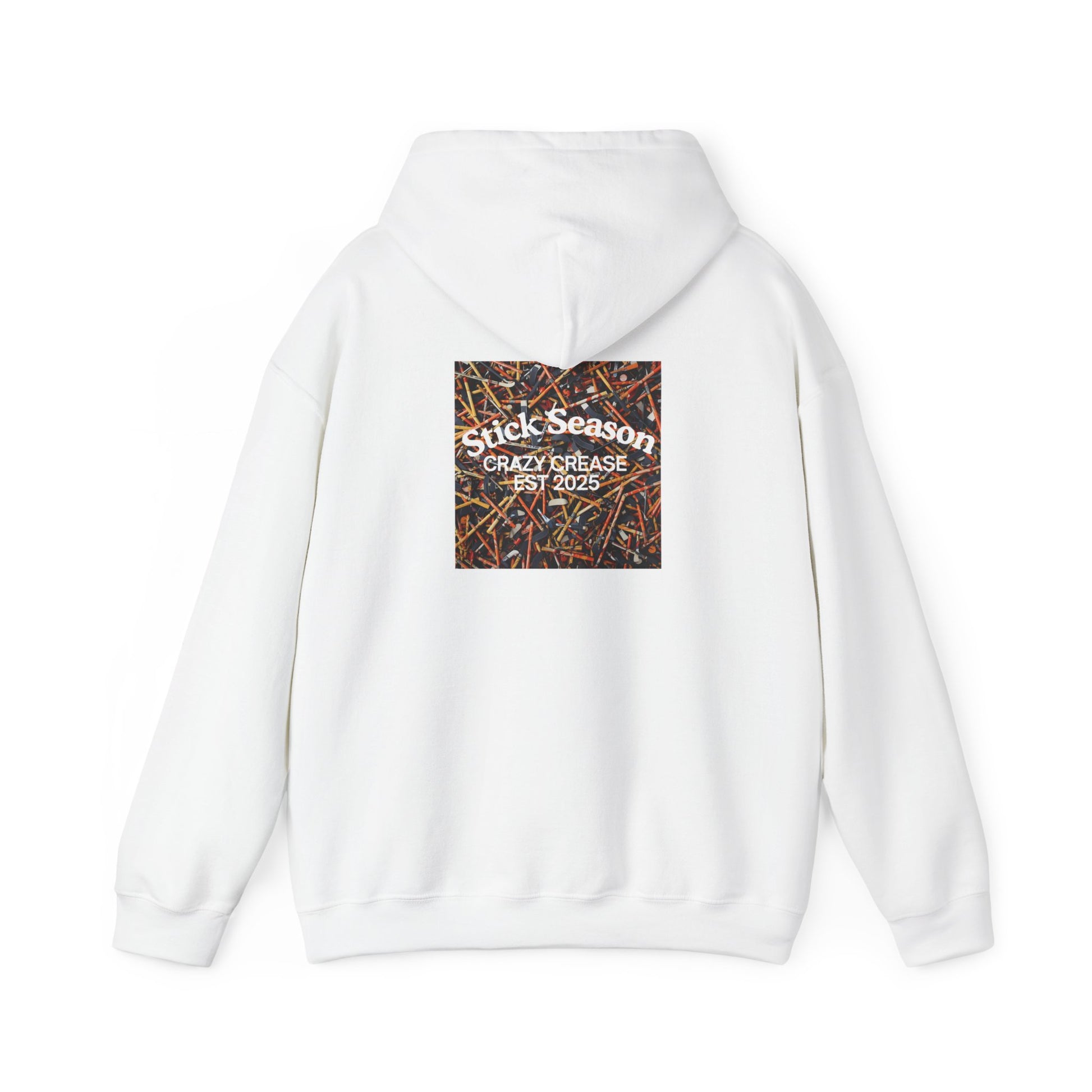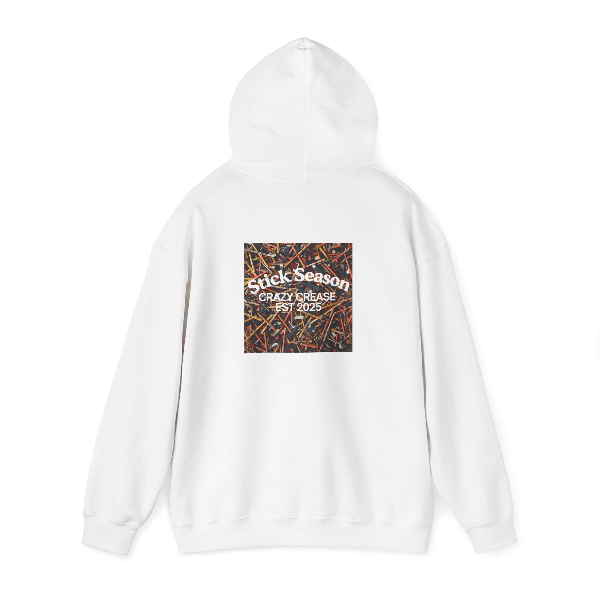 With an adjustable hood drawsting and cozy kangaroo pouch pocket, the Stick Season hoodie is a cozy as it is funcitonal keeping you looking your bet! Unisex sizing for all adult crease creatures. Medium-havy cotton/poly blend fabric for warmth, durability, and ideal fit wash after wash.