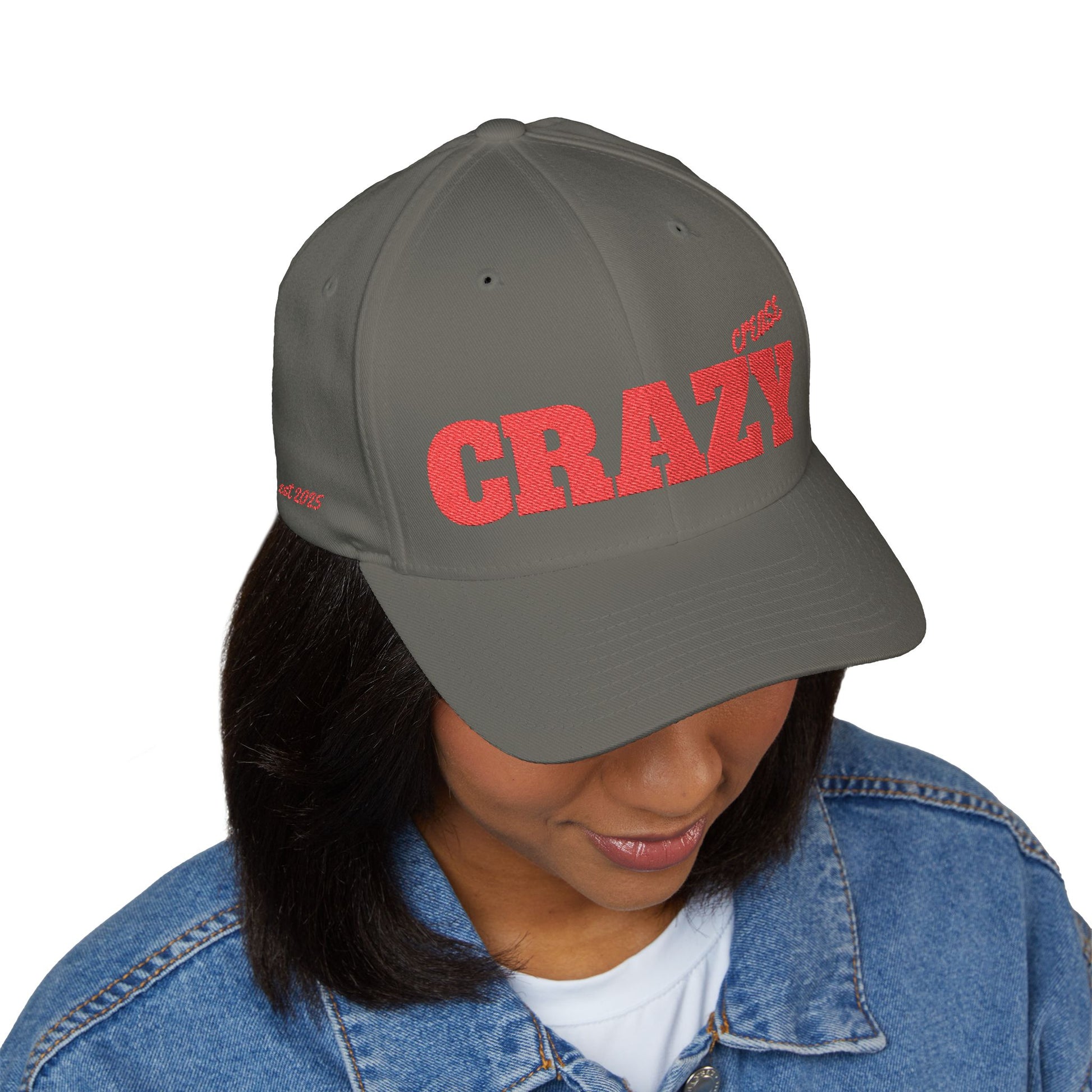 Spread the word with this flexfit hat, available in two sizes, featuring Crazy Crease embroidered design.