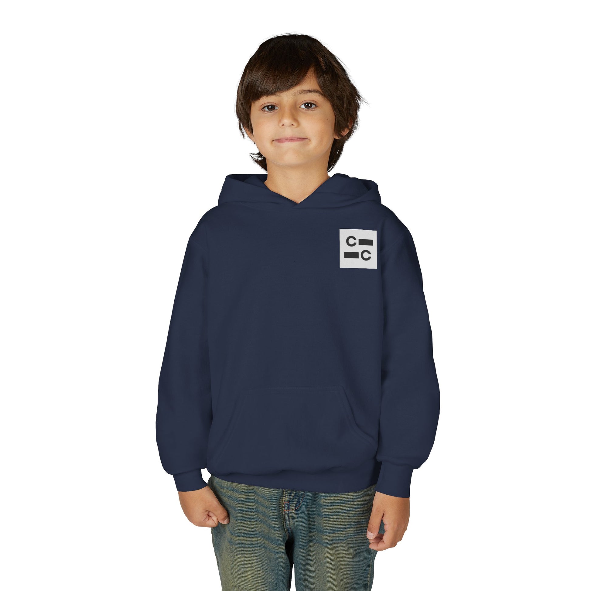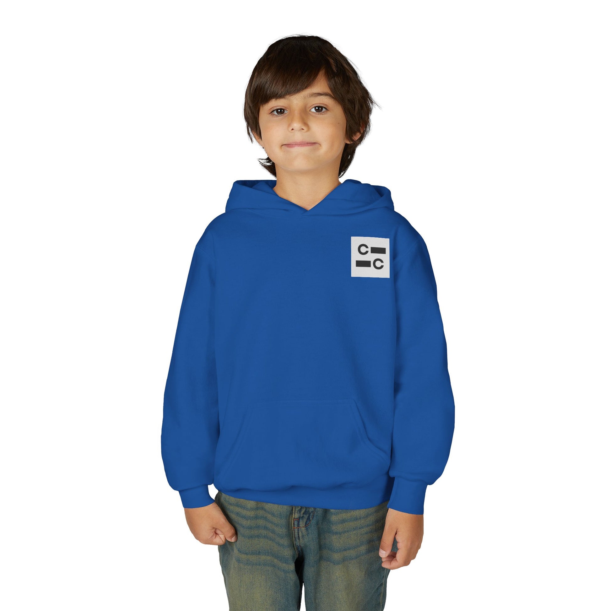This youth hooded sweatshirt is a made from a soft and durable 50/50 cotton-polyester blend and is regualr fit/true-to-size. The hoodie features a front kangaroo pouch pocket and is ideal for keeping crease creatures cozy at school, home, or the rink!